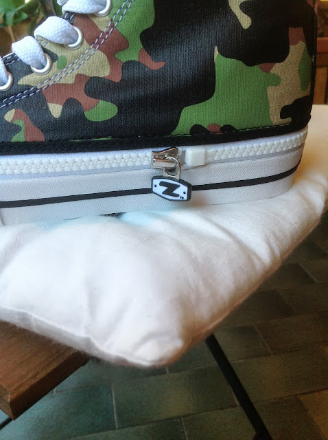 Indosso sempre scarpe scarpe col tacco ma, data l’occasione, sono stata obbligata ad abbandonarle per fare posto alle mie nuove e fantastiche Zipz shoes in tessuto camo! Mi piacciono davvero tanto queste scarpe innovative che sono… intercambiabili! Sì, avete letto bene, intercambiabili perchè sono delle sneakers con una cerniera tra la suola e la cover così da permettervi di creare un’infinità di combinazioni di scarpe ogni giorno!