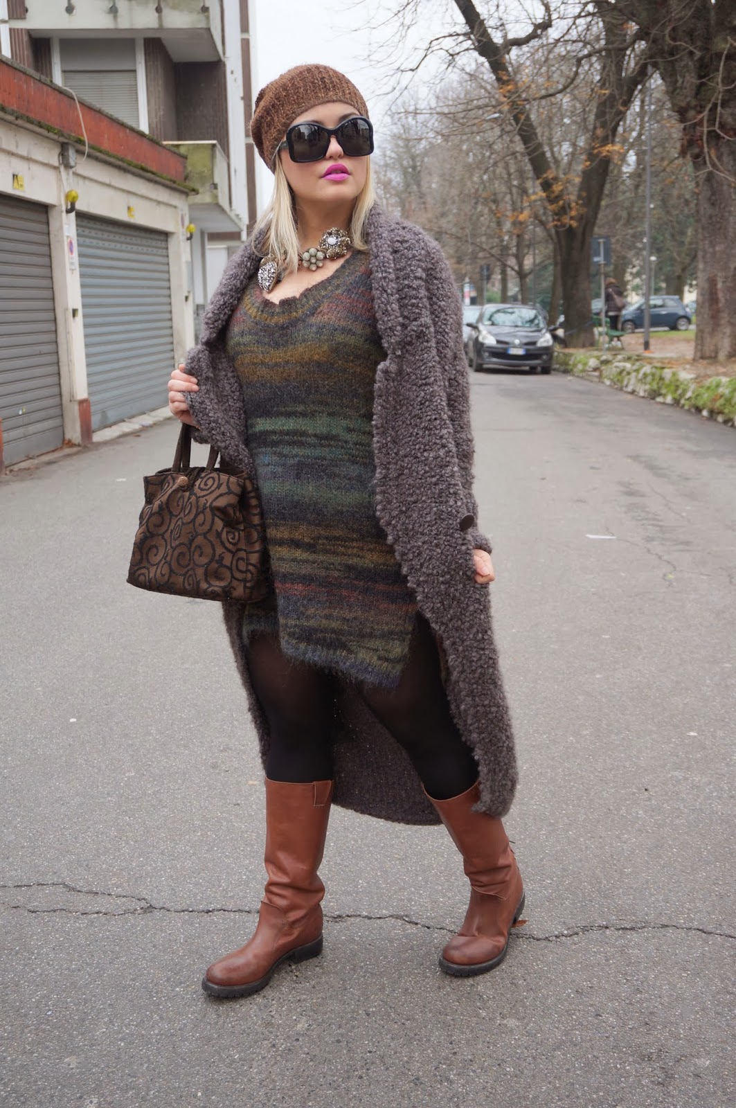 The result is a total look by Manila Grace, realized with a warm knit coat and dress ( both uber warm!), precious necklace and boots.