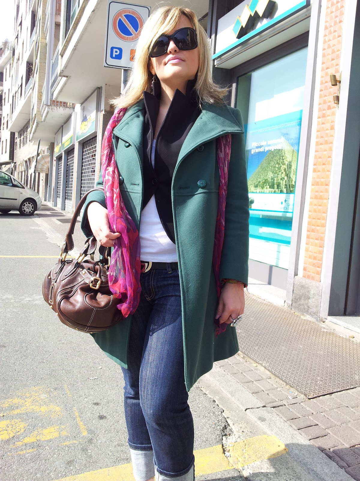 Ecco qui un outfit con il mio cappottino verde preferito 🙂 L’ho indossato con un paio di jeans alla mia lunghezza favorita… 3/4!